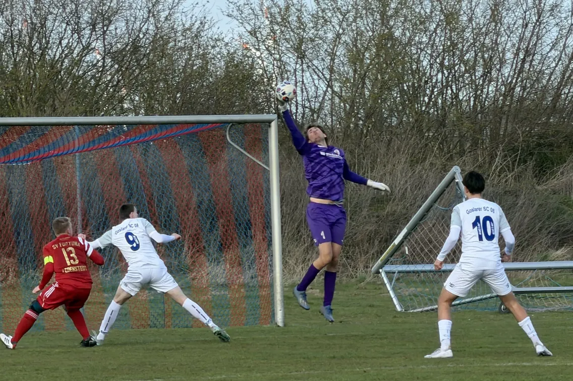 Nach einem wenig erbaulichen Spiel trennten sich Fortuna Lebenstedt und unser Goslarer SC 0:0. Die personellen Engpässe, die nach dem erneuten Kreuzbandriss von Enno Dürrbeck, dem Fehlen des Langzeitverletzten Tyler Bauer und dem im Urlaub weilenden Kapitän Kilian Kirchner sowie den ebenfalls nicht zur Verfügung stehenden Spielern Karim Ben Guedria und Matteo Kurtz zu verkraften waren, konnten immerhin insoweit einigermaßen kompensiert werden, als man mit einem Punkt und ohne Gegentor die Heimreise antreten konnte.